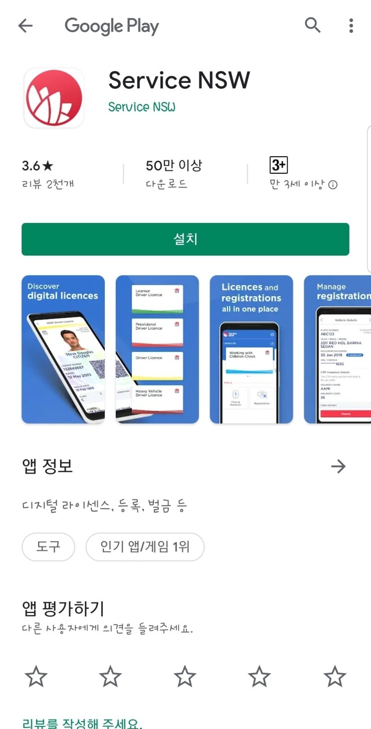 1. 모바일폰에서 "Service NSW " 앱을 설치합니다.