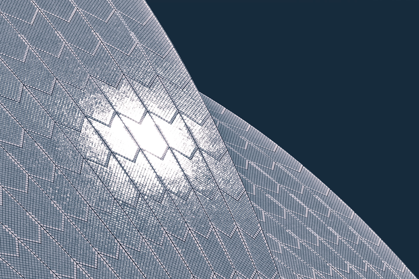 웃손은 이렇게 꾸민 지붕이 "새벽부터 해 질 무렵까지 다양한 불빛으로 하늘을 비추고 반사한다."라고 설계에 썼습니다.